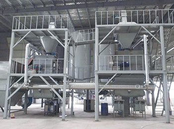 膩子粉生產線主要由原料儲存系統,輸送系統、計量稱重配料系統、混合系統、氣動系統、除塵系統、包裝系統及自動控制系統...